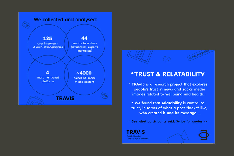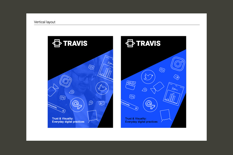 Visual identity for “Trust And Visuality: Everyday digital practices (TRAVIS)” – a research project that will look at how people experience, build and express trust in news and social media images related to wellbeing and health.